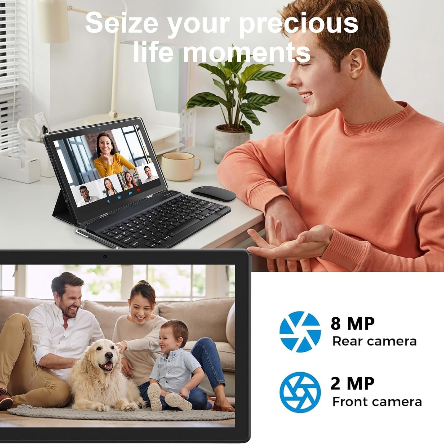 Wyposażony w przednią kamerę 2 MP i tylną kamerę 8 MP, tablet ten rejestruje wyraźne zdjęcia i filmy, dzięki czemu idealnie nadaje się do dzielenia się chwilami w podróży.