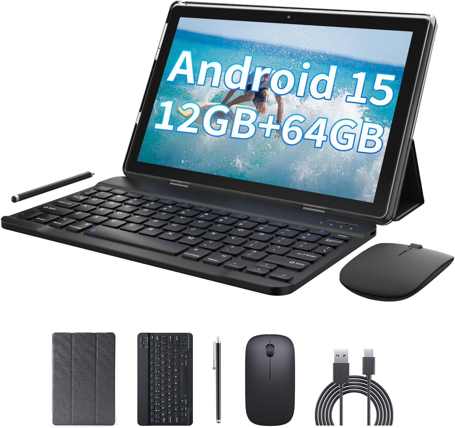 Tablet PRITOM 10.1″ Android 15 z klawiaturą, myszą, rysikiem, etui i podpórką - 64 GB, bateria 6000 mAh