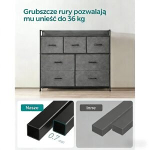 Komoda do przechowywania z 7 szufladami, zestawem akcesoriów i szczegółową instrukcją obsługi ułatwiającą montaż,