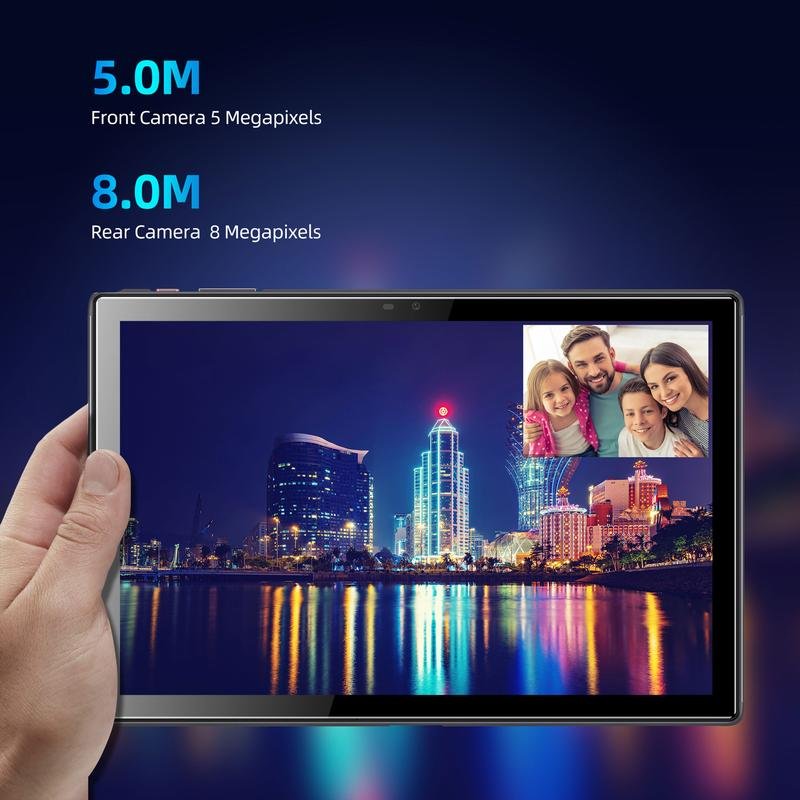【Fashionable and Portable】10.1 inch tablet 1280*800 HD display screen tablets, 5 MP front camera, 8 MP rear camera. Sensitive touch screen & 2 high fidelity speaker with chamber. All metal body, exquisite appearance, looks fashionable and high-end.